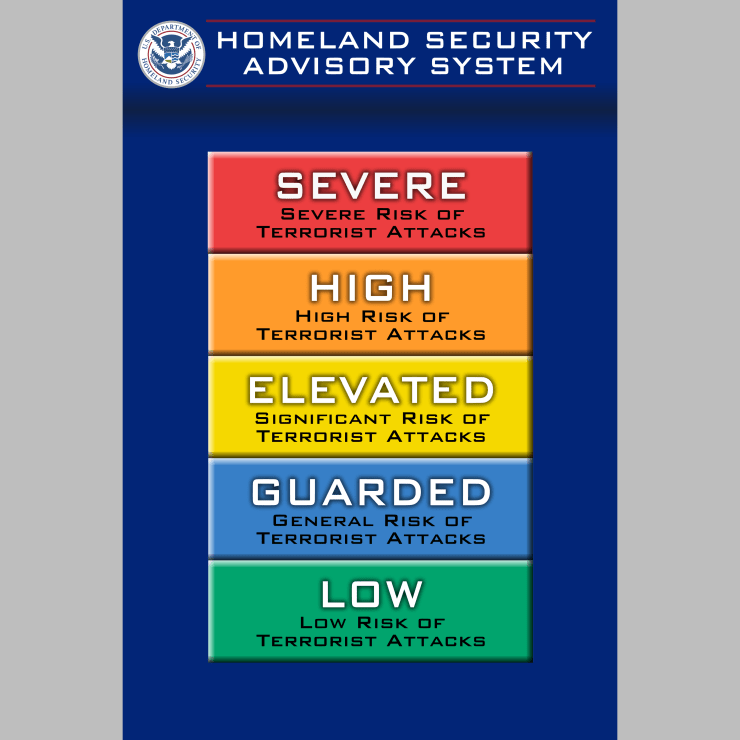 Let’s go back to the early days of the Homeland Security Advisory System. I remember making travel plans when this scheme was in place: